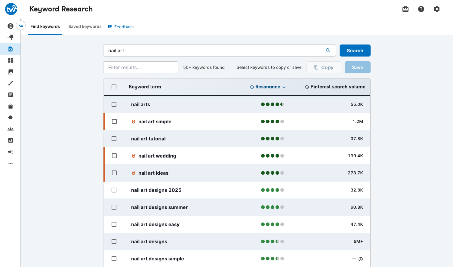 Resonance is a comparative signal to help prioritize keywords for Pinterest. It is not a guarantee of performance.