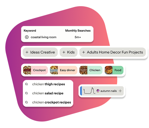 - Guided/visual suggestions — Pinterest’s visual discovery signals (e.g., guided search, Lens-style expansions).